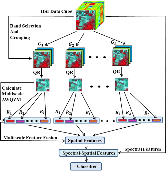 由于高光谱图像受标记样本的有限性、数据的高维性、光谱特征的空间变异性等因素影响,高光谱图像分类研究一直是该领域研究的重点和难点。目前,高光谱图像的高精度分类方法较少,传统四元数Zernike矩算法(Quaternion Zernike Moments, QZM)主要应用于彩色图像分类,却不太适用于高光谱图像精确分类。为了实现高光谱图像精准分类的目标,本文受QZM算法在彩色图像分类中具有平移、旋转、伸缩等不变性特点启发,创造性提出了一种自适应加权的四元数Zernike矩算法((Adaptive Weighted Quaternion Zernike Moments,AWQZM)。