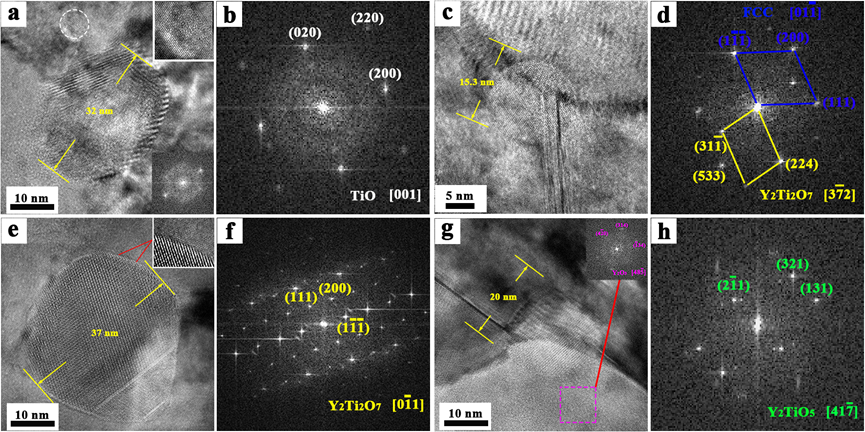 图2 T-1.05Y高熵合金中析出纳米氧化物颗粒的HRTEM图像
