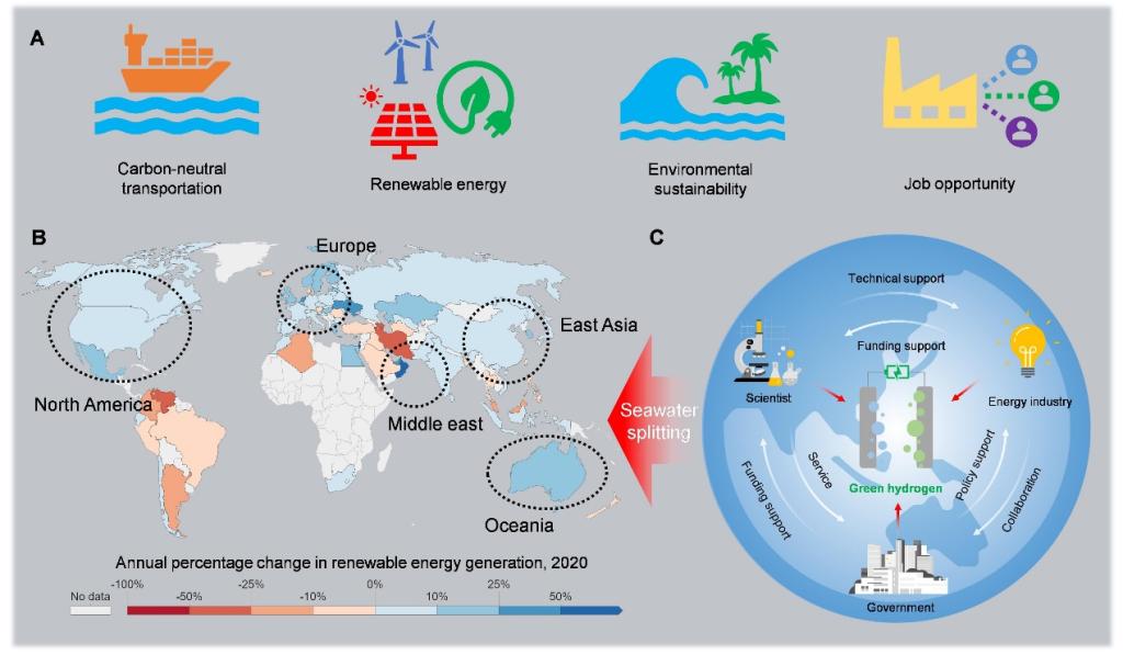 图.蓝色经济促进可再生能源系统的海水直接电解