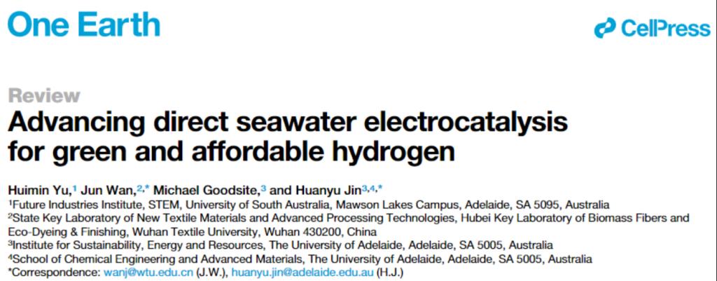 近日,伟德bv国际体育化工学院、省部共建纺织新材料与先进加工技术伟德bv国际体育徐卫林院士团队的万骏教授,与澳大利亚阿德莱德大学金桓宇研究员、Michael Goodsite教授合作,在国际学术期刊One Earth上发表了题为“Advancing Direct Seawater Electrocatalysis for Green and Affordable Hydrogen”的综述论文。南澳大学于慧敏研究员为第一作者。One Earth期刊为国际顶级期刊Cell的姊妹刊,属四大跨学科姊妹刊中地球科学类的首本期刊,致力于聚焦环境科学与可持续发展研究领域。