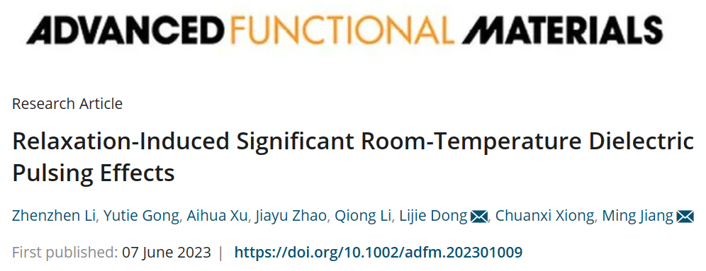 近日,材料领域国际知名期刊《先进功能材料》(Advanced Functional Materials)在线发表伟德bv国际体育材料学院姜明副教授团队在热响应介电材料领域的重要进展,相关工作以“Relaxation-Induced Significant Room-Temperature Dielectric Pulsing Effects”为题发表在Advanced Functional Materials上。文章链接:https://doi.org/10.1002/adfm.202301009。伟德bv国际体育为该论文的第一署名单位,材料学院姜明副教授为论文责任通讯作者,材料学院硕士研究生李珍珍为论文第一作者。该项工作得到了国家自然科学基金(51503158)的资助。本论文是该团队在最近一年内的第三篇Advanced Functional Materials。