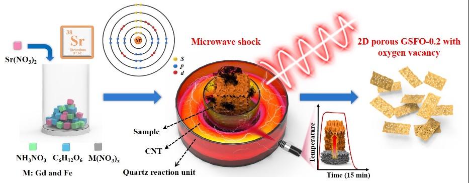 图2.微波热冲法制备二维多孔GdFeO3