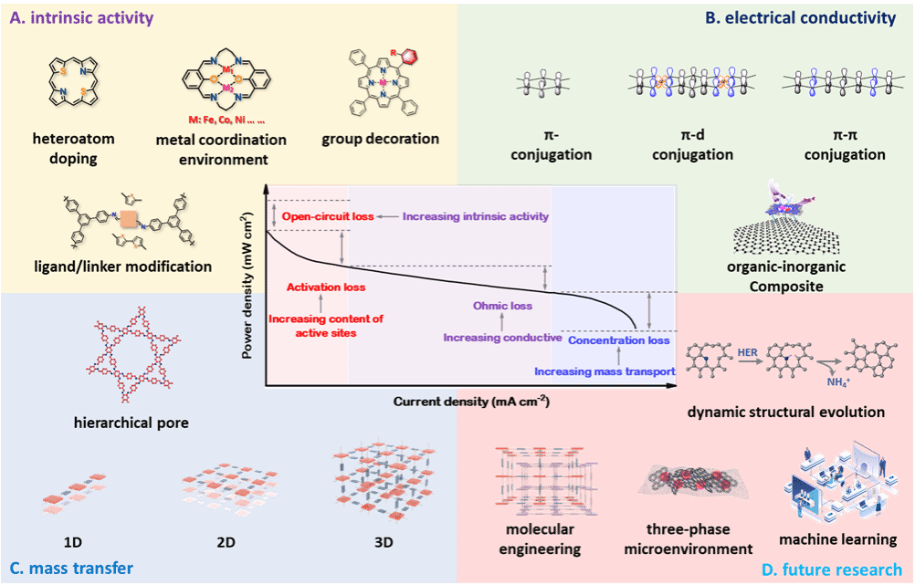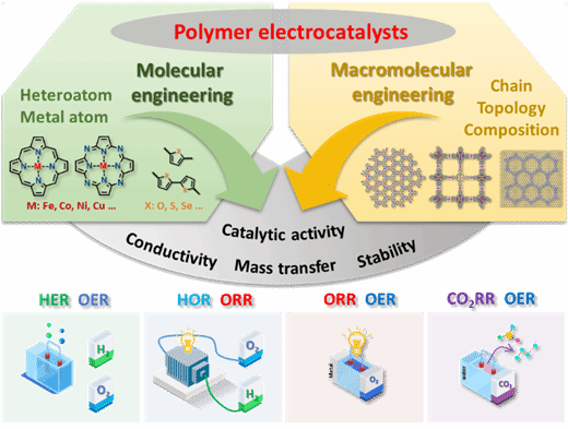 图1. 活性中心设计和大分子工程调控聚合物电催化特性
