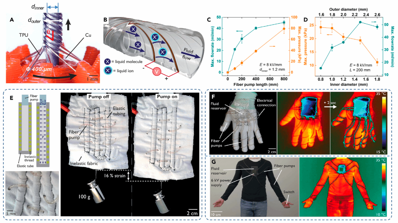 图1. 纤维基柔性流体泵(图片引用自Science, 2023, 379, 1327-1332)