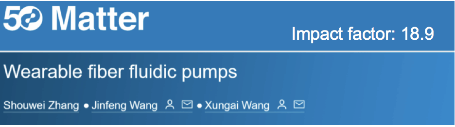 近日,技术研究院先进纺纱织造及清洁生产国家地方联合工程实验室王金凤教授和香港理工大学王训该教授应邀,在《Matter》上针对纤维基柔性流体泵工作(Science, 2023, 379, 1327-1332)发表题为“Wearable fiber fluidic pumps”的评述文章(链接:https://doi.org/10.1016/j.matt.2023.05.003),并收录于《Matter》评述专刊。伟德bv国际体育为第一署名单位,国家地方联合工程实验室张守伟博士为第一作者,王金凤教授和王训该教授为通讯作者。Matter是Cell期刊的姊妹刊,是材料、化学类享有盛誉的国际权威期刊。
