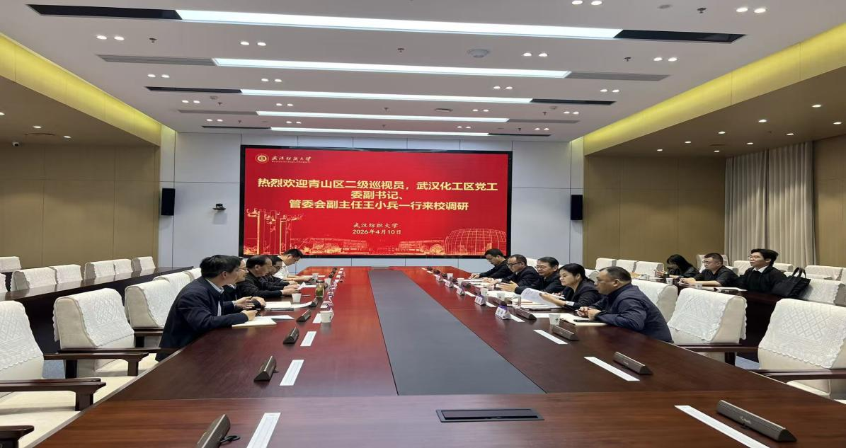 冯军代表学校对王小兵一行的到访表示热烈欢迎,他简要介绍了学校近年来在人才培养、学科建设、科学研究等方面取得的积极进展,期待与青山区(武汉化工区)在科技创新、人才培养等方面实现更深层次的合作。