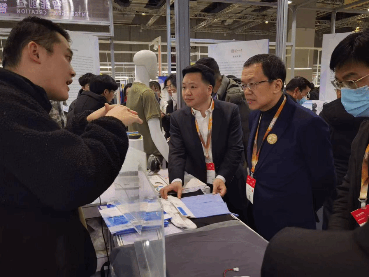 由中国纺织工业联合会主办,中国纺织工业联合会科技发展部、中国贸易促进委员会纺织行业分会共同打造的2024“中国国际纺织面料及辅料(春夏)博览会”之“新技术创新空间”展示活动于3月6-8号在上海再次亮相,集结面料展、服装展、家纺展、纱线展、针织展五大专业展会,同期同地,融汇新市场、新场景、新赛道,引领未来产业和产业未来,培育新质生产力。本次展会以“智慧创造、智能纺织”为主题,伟德bv国际体育受邀参展,纺织学院、技术研究院相关人员携20多件展品参展。