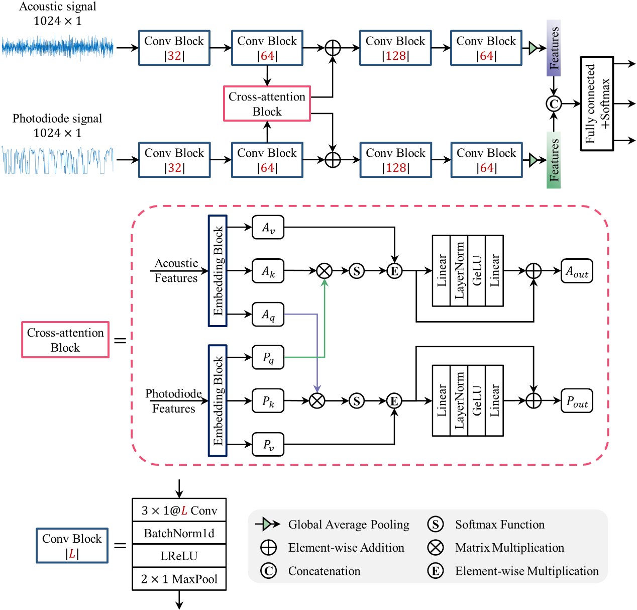 为此,本研究提出采用声学传感器和光电传感器采集铝合金激光焊接过程中的信号。首先基于焊缝表面和横截面形态,构建包含三种典型熔透状态的焊接数据集。其次,提出了一种基于交叉注意力融合机制的神经网络(CAFNet),在无需进行时间-频率分析和特征学习的前提下,交互捕获提取光电和声有效信息,实现有效的焊接质量分类。通过与不同深度学习方法进行比较实验,结果表明,所提出的CAFNet方法在完整数据集下实现了99.73%的平均测试精度和0.37%的标准偏差,优于其他比较模型。此外,当使用有效且不平衡数据集时,所提出的CAFNet实现了94.34%的最高平均测试精度,表明所提出方法比其他方法具有更强的鲁棒性。该研究是激光焊接监测与控制中的一种新方法,可以为激光加工质量的智能监测与实时控制提供技术支撑。