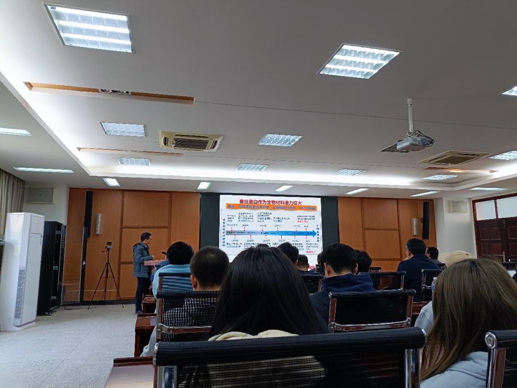 接下来,纺织学院的尤仁传教授,技术研究院王震博士,数理科学学院谭雅岚博士,材料学院胡烈峰博士,技术研究院周鹏程博士,计算机与人工智能学院朱强博士,技术研究院崔永明博士等7位教师分别围绕生物医药与医用纺织材料专题,结合各自的研究进展展开了学术报告和交流。在主讲老师精彩的讲述下,与会老师与研究生展现出对这些工作的浓厚兴趣,并深入的进行了交流与探讨,凸显本次沙龙初衷“摸清现状,展望未来”。
