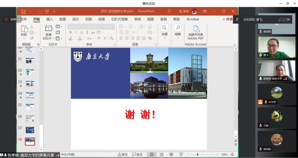 潘飞教授感谢张孝林副教授的精彩报告,他指出开发功能化纳米材料用于水体中砷氟污染物的深度去除具有重要意义,将基础研究用于实际应用是未来发展的大方向和趋势,希望今后能多多合作,加强联系,共同推动我院整体的学术水平迈上新台阶。