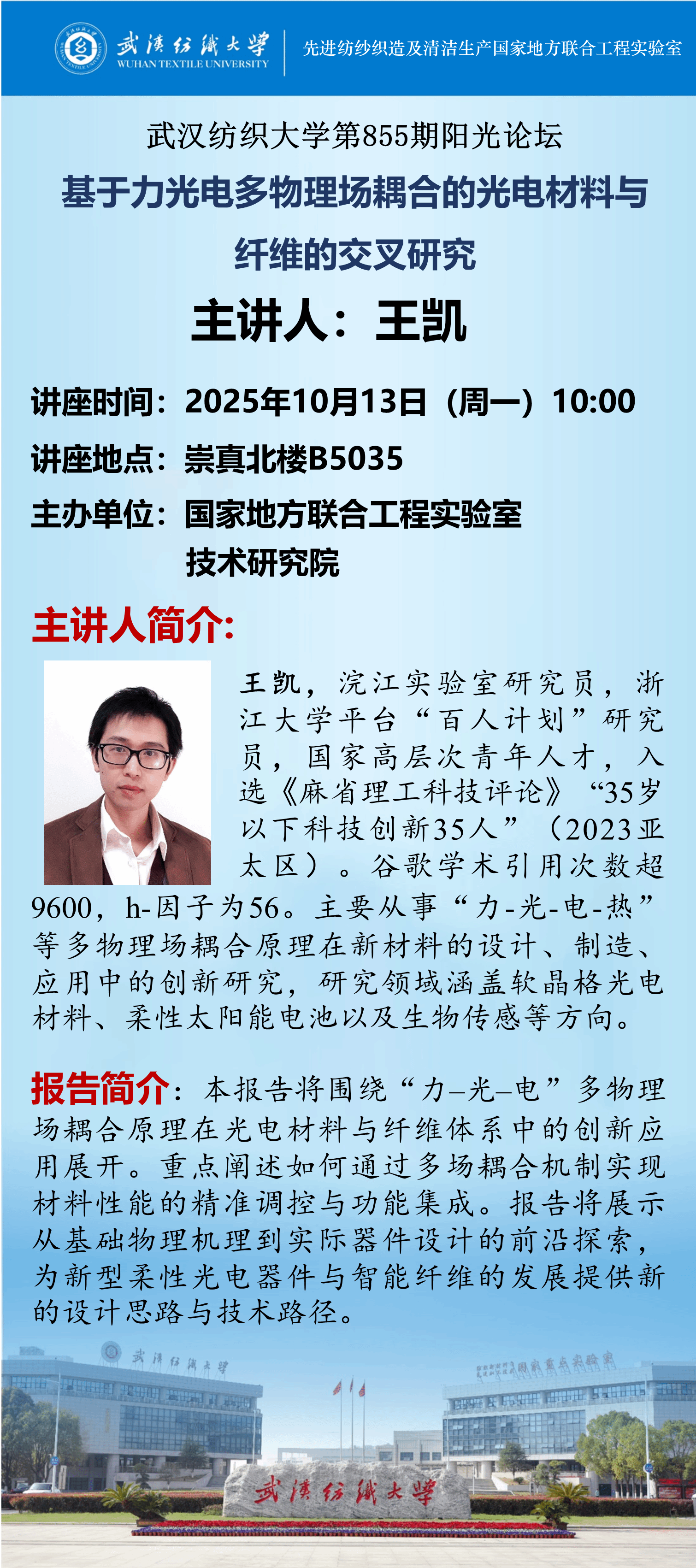 (第855期阳光论坛)基于力光电多物理场耦合的光电材料与纤维的交叉研究