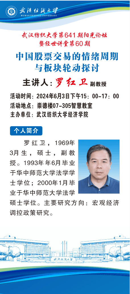 下一篇:(第638期阳光论坛)Life and study overseas: Stanford University to Wuhan Textile University